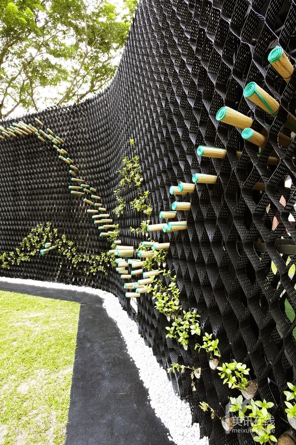 Wonder Wall是用多種廢棄材料,重新利用而建成的低碳環(huán)保型設(shè)計(jì),對(duì)于喚起和啟發(fā)人們對(duì)于新加坡生態(tài)的新思考。