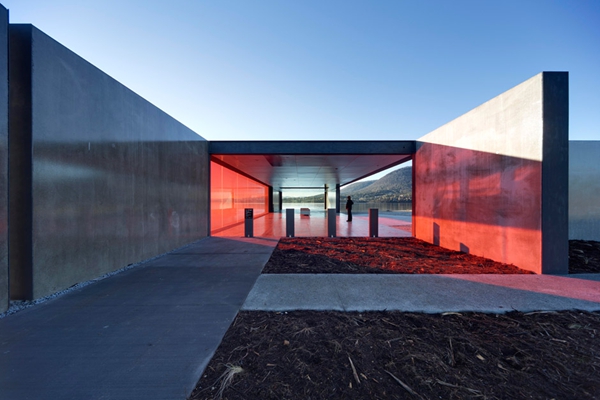 時的庇護。第二階段也在今年完成,里面有新建的第三個展示館,整個展示館由混凝土和紅色玻璃組