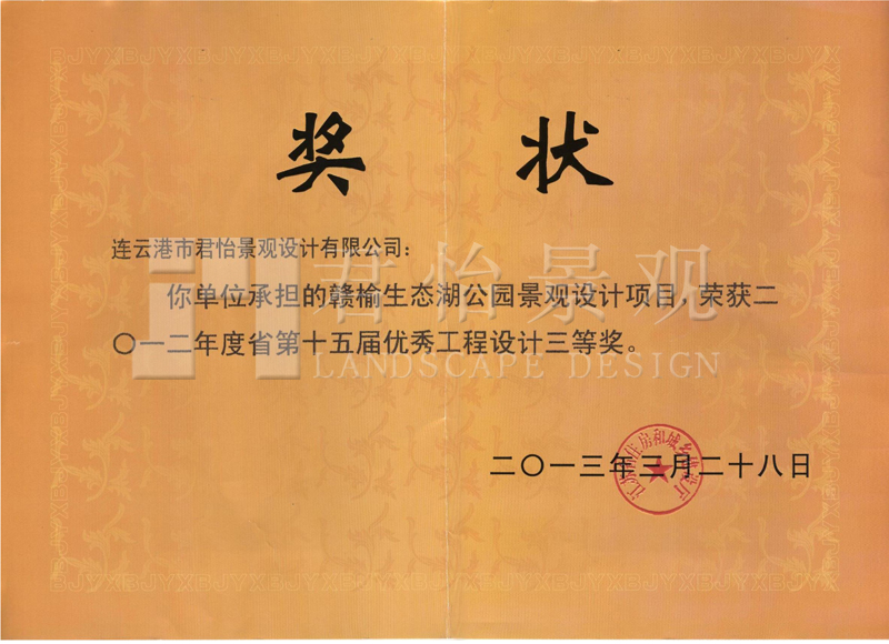 2013年獲獎(jiǎng)證書(shū)