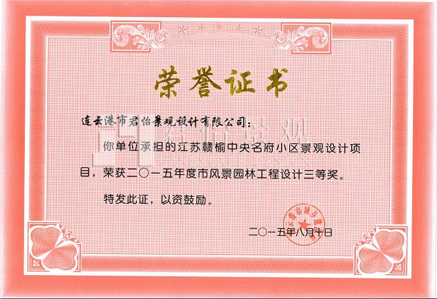 2015年獲獎(jiǎng)證書(shū)